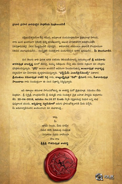 Gautamiputra Satakarni Movie Opening Invitations Cards